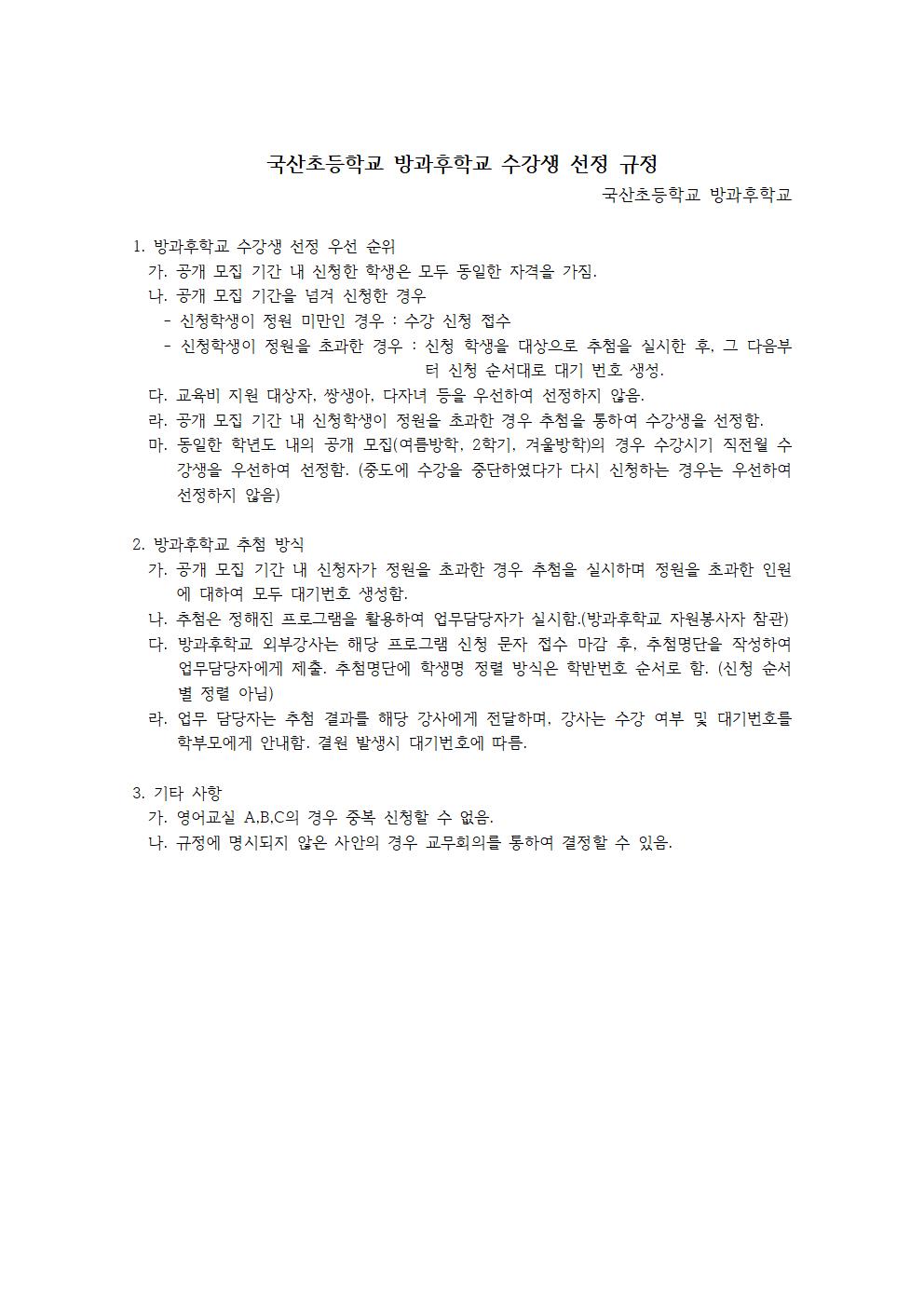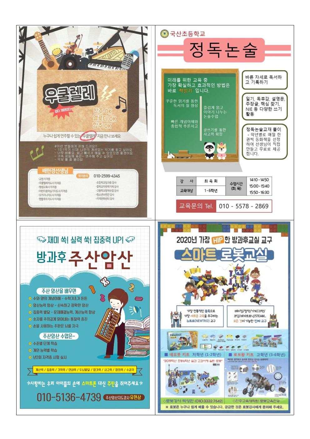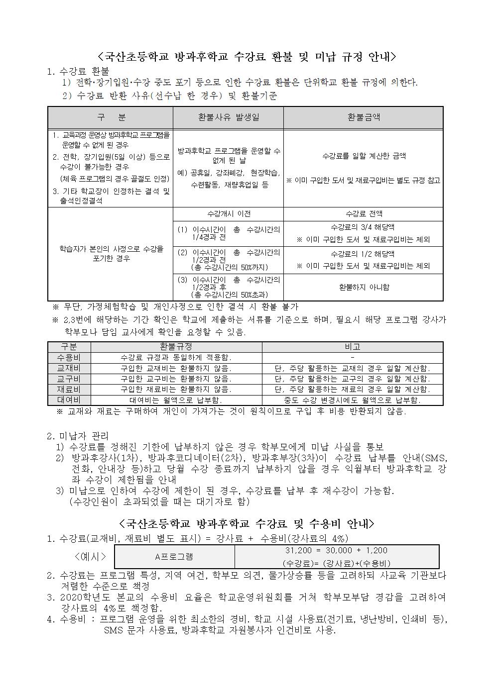 2020학년도 1학기 방과후학교 운영 및 신청 안내