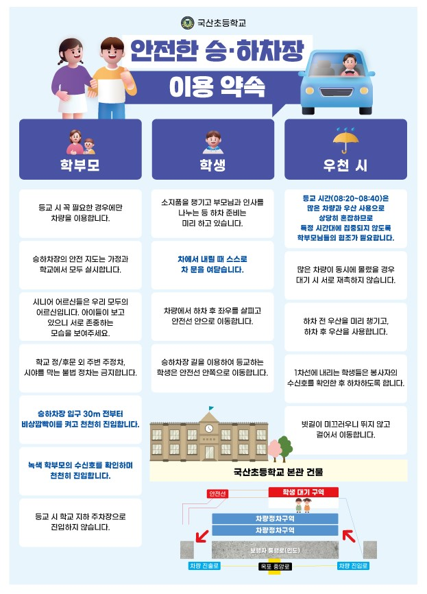 학생들의 안전한 등하교를 위하여 본교에서는 '안전한 승.하차장'을 운영하고 있습니다.