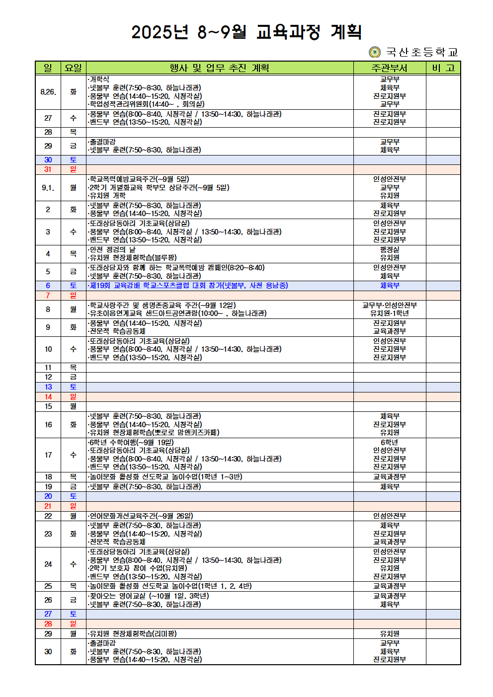 <2025. 8~9월 교육과정 계획 안내>