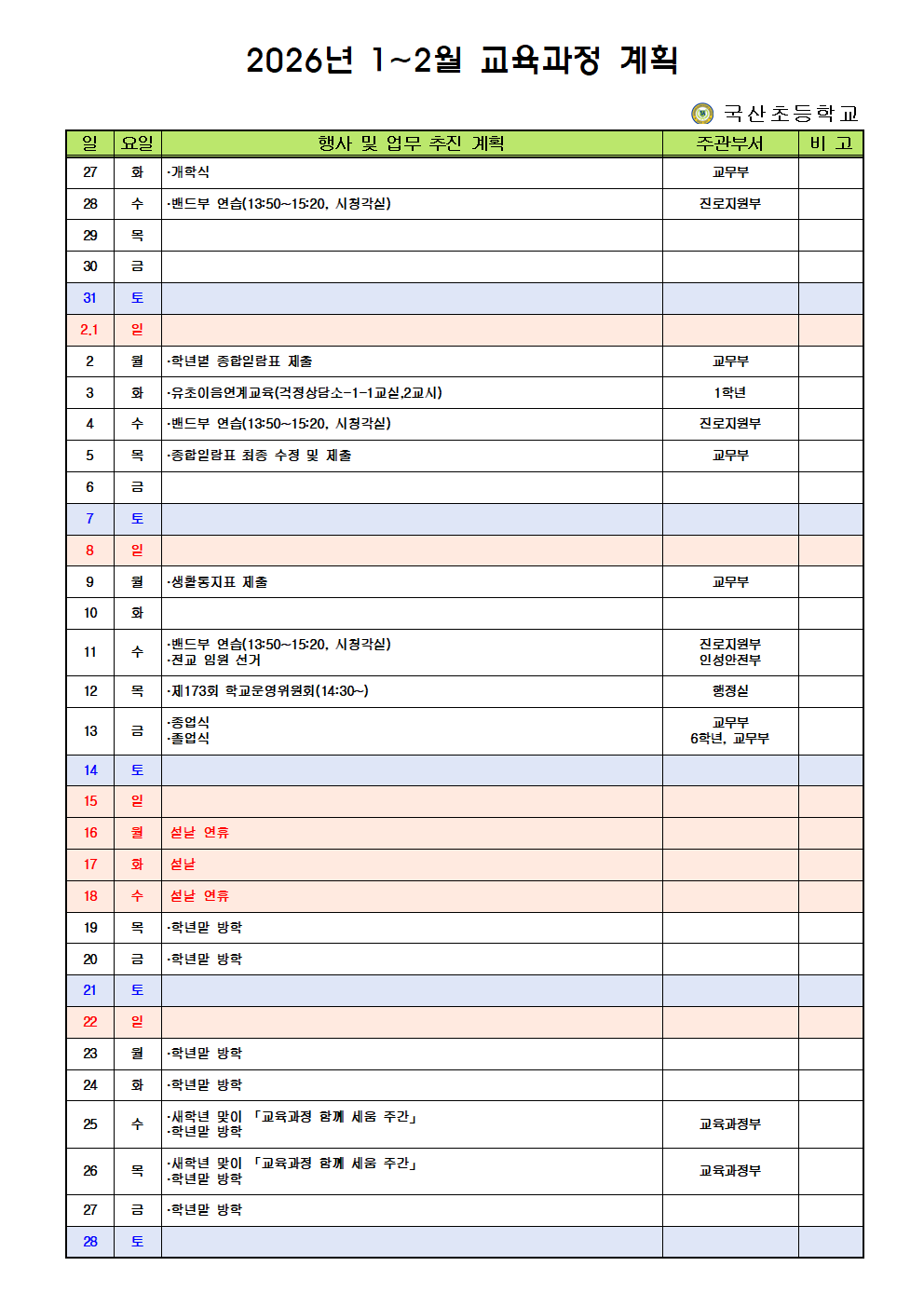 2026년 1~2월 교육과정 계획